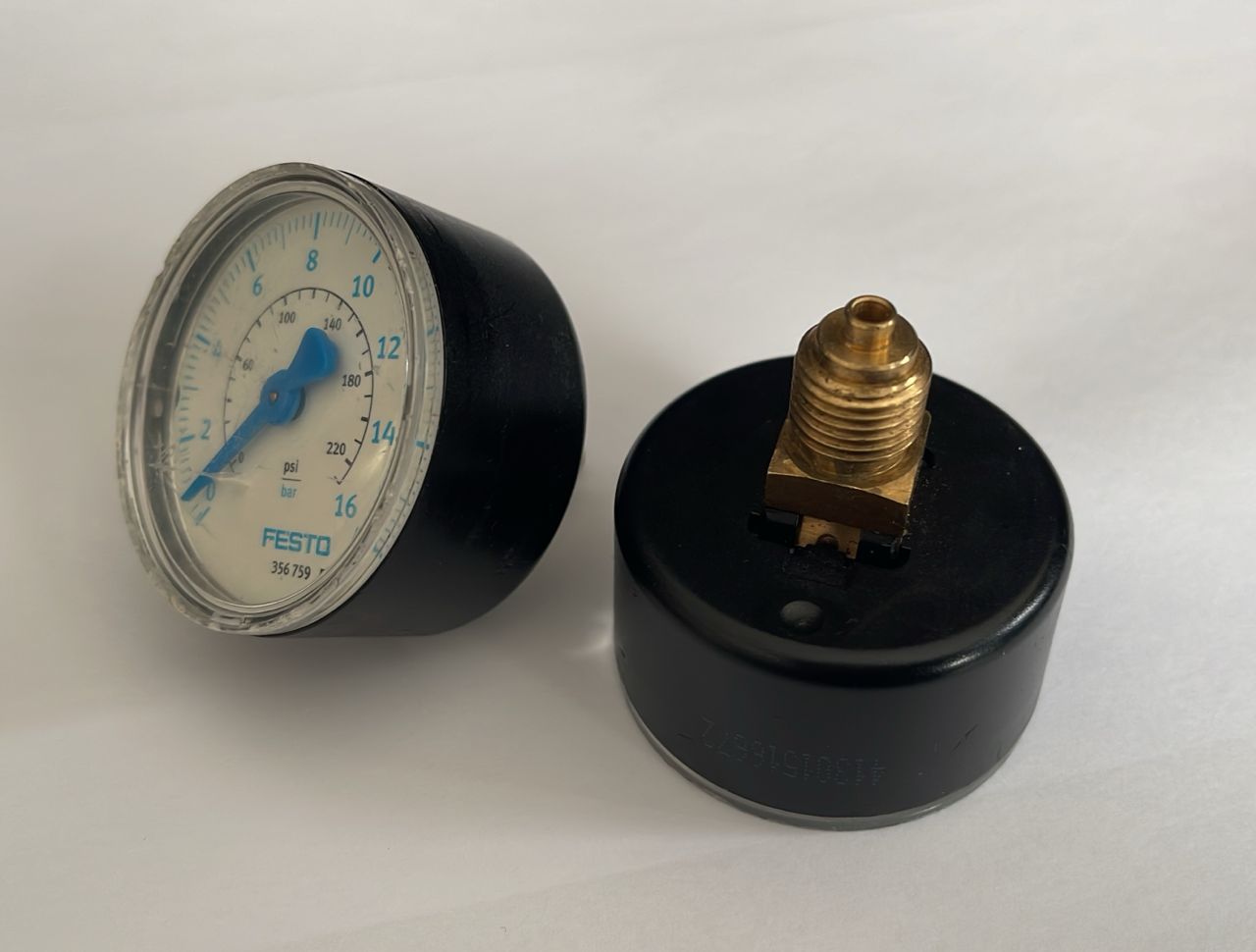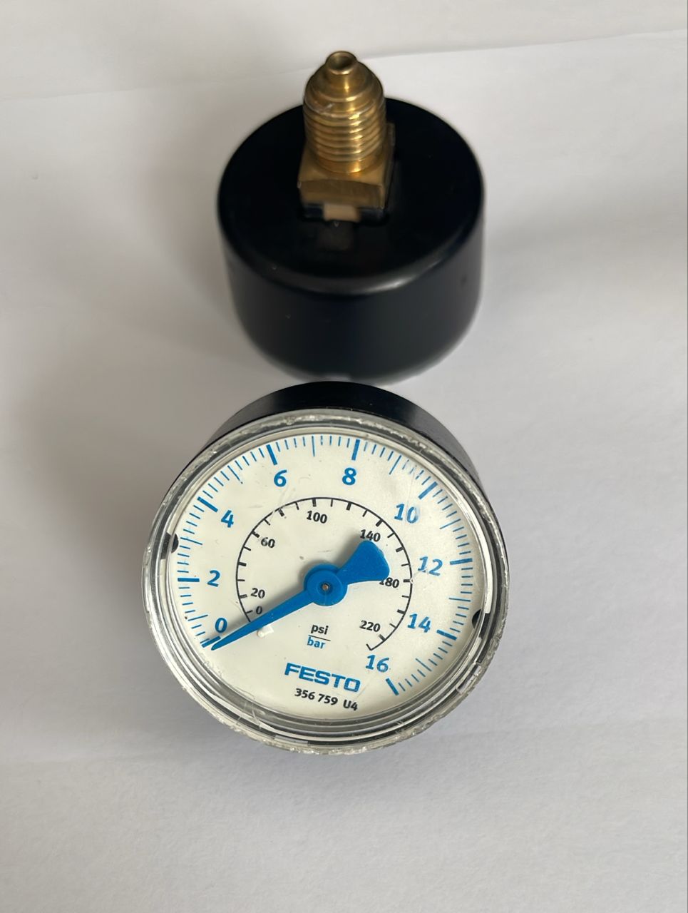 گیج فشار MA فستو به عبارت دیگر درجه فشار فستو که از نظر کیقیت و کارایی بدون رقیب است و دارای گارانتی یک ساله است و نوع طراحی و ابعاد اندازه ی ان به نحوی است که ابتدا وزن کمتری نسب به سایر پرشر گیج های پنوماتیک داشته باشد و در نهایت انظر بزرگی صفحه جوری باشد که قراعت کردن و از دور دیدن اعداد برای اپراتور به راحتی قابل انجام باشد. FESTO PRESSURE GAUGE MA/FMA معمولا روی انواع واحد مراقبت ها و رگولاتور ها و سیستم های تصویه هوا و … مورد استفاده میشود و از این رو به انها درجه فشار ابگر و یا گیج رگولاتور و حتی فشار سنج واحد مراقبت هم گفته میشود وانواع اسم های دیگر که همگی یه محصول را در بر میگیرد و این خانواده از گیج فشار دارای بدنه ای از جنس پلاستیک ABS و شیشه ای از جنس پلی کربنات دارد که تقریبا تمامی استاندارد های محیطی از نظراستاندارد محیطهای بهداشتی که یکی از پارامترهای مهم برای ورود هرتجهیزی به واحد تولید صنایع بهداشتی است و قسمت بعدی این گیج فشار جنس کانکشن ان است که از الیاژ برنجی ساخته است تا مناسب نصب بر روی انواع یونیت مراقب های هوای فشرده باشد و به خاطر جنس بدنه ی المینیومی یا حتی پلاستیکی سیستم های تنظیم فشار و رگولاتور متریال برنجی برای اب بندی ان بسیار مناسب است.